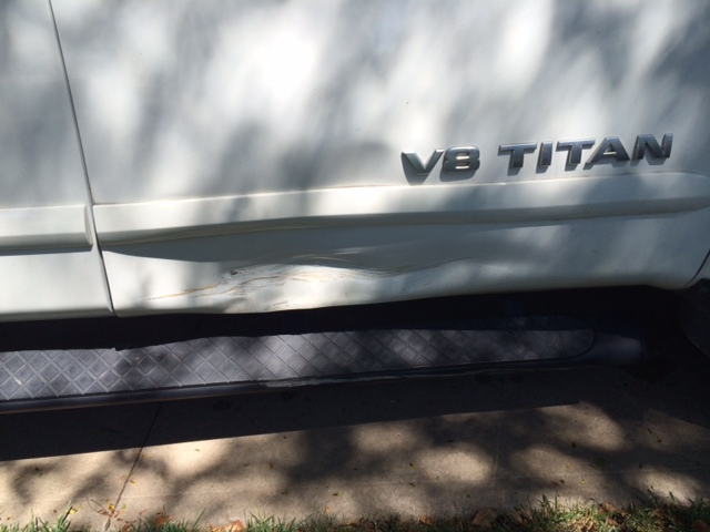 1. What an odd place on the truck for damage in an accident! I would think the door would have had to have been opened for this to happen. Was the step bar damaged?