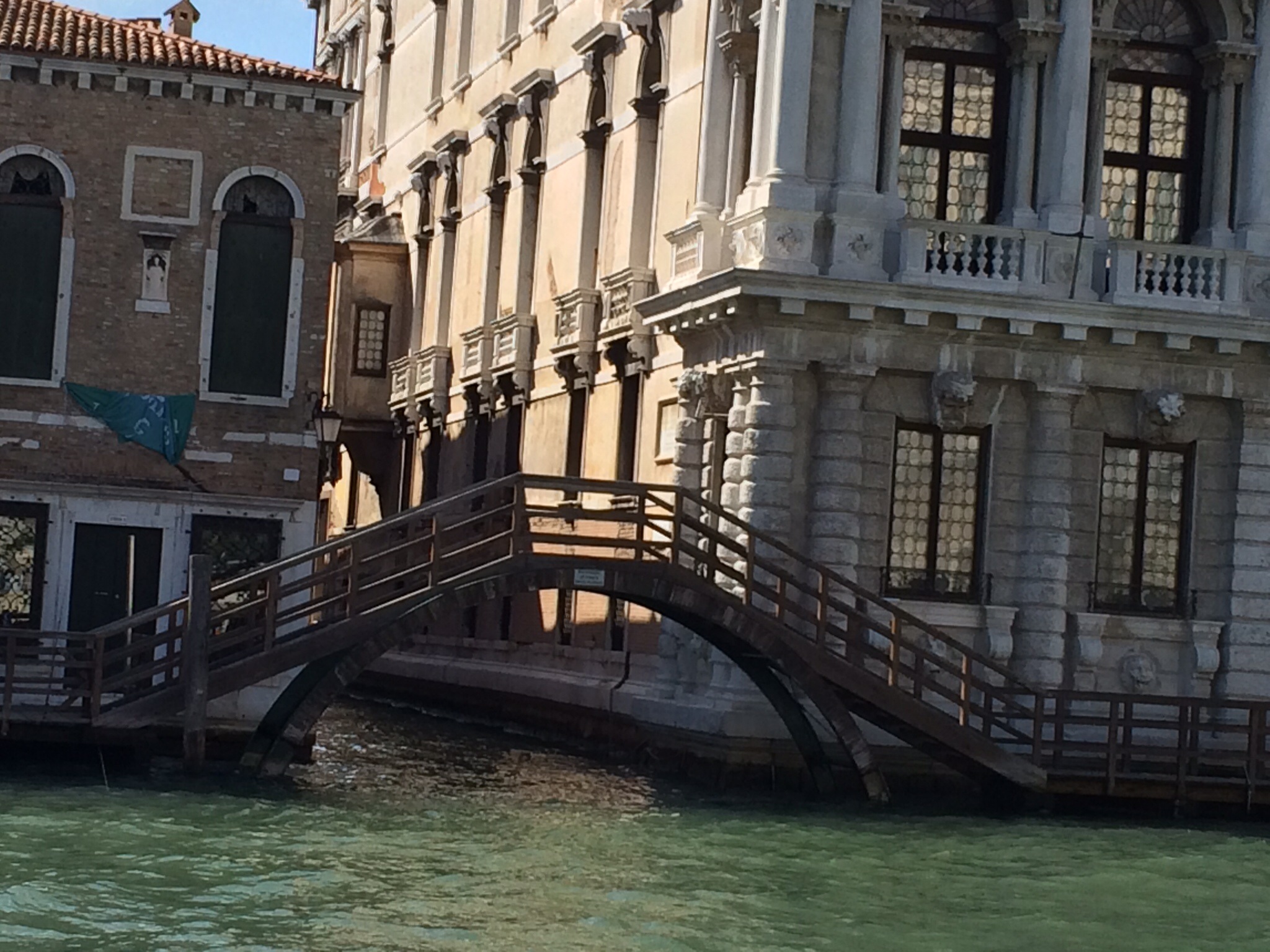 Found out how supplies are delivered to the businesses in this canal city while waiting on a bridge this morning. The long boats pull up to the taxi pick up corners and they unload onto carts and are then pushed around the city for delivery. While I was standing on the bridge taking in the view, one of the long boats slowly meandered down the canal under me and I had a freakish movie scenario go thru my head ….of me….(feel free to fill In The movie characters)…jumped from the bridge onto the boat and ran across all of the boxes and jumped the driver. Shortly our water taxi arrived…couldnt park next to the sidewalk so we had to step down on the delivery boat and walk across it to board the taxi. I had already been wondering how brave I was going to be stepping from the sidewalk down to the taxi. I’m thankful the real scenario had not been entertained in my already fertile imagination.