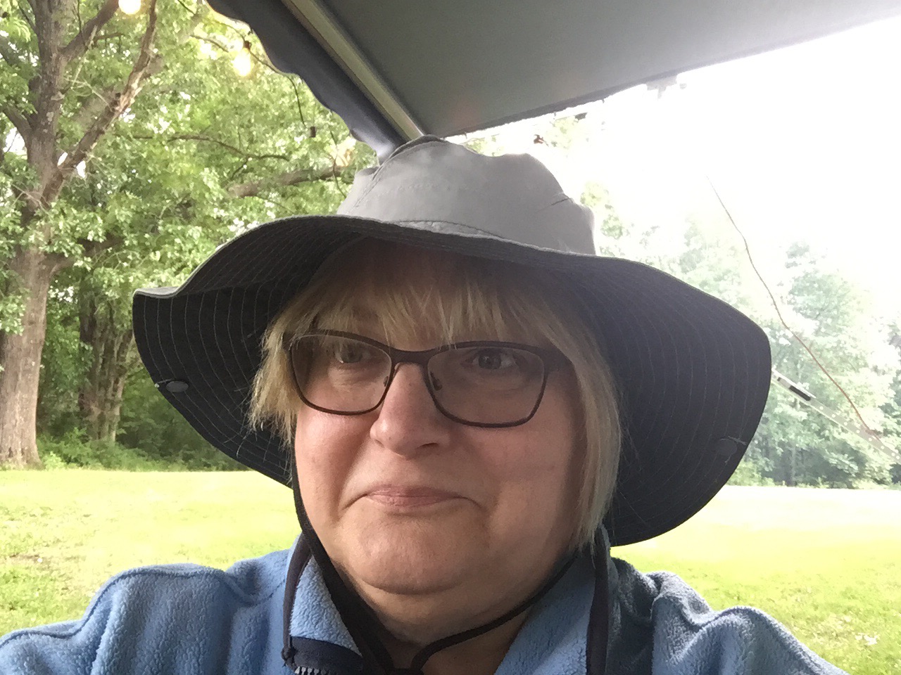 Pretty discouraging chance of rain today but really only had a couple of mild showers and it moved on…the sun would come out then back to clouds and dark sky. About 9p we started the heaviest rain of the day and I had to leave the bonfire. My sprinkle and rain look.