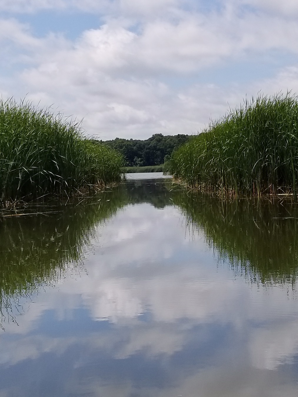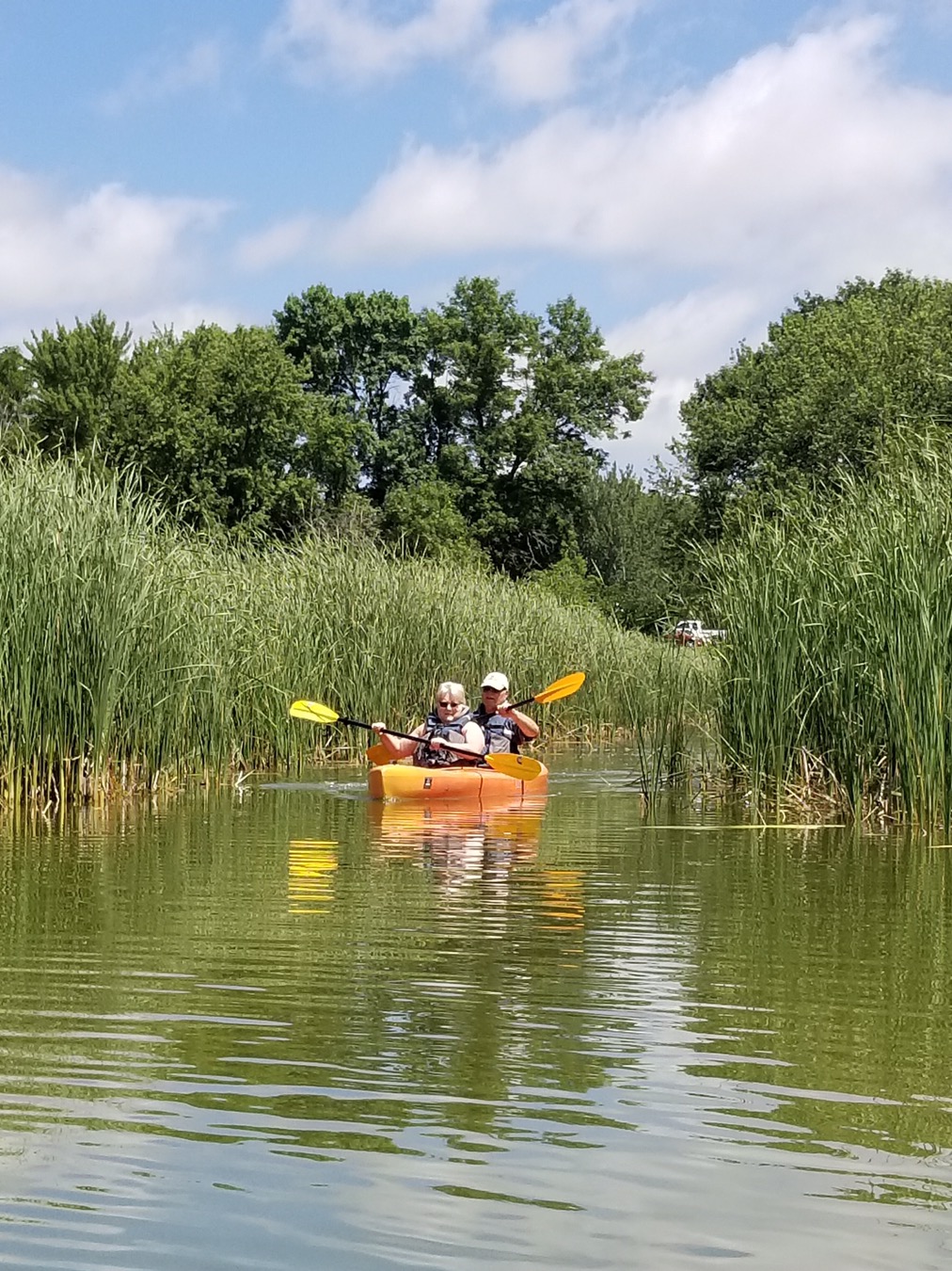 We rented kayaks at a conservation area about 10 minutes from our campground. He and I ended up in a double because there were not 3 singles. What we learned was its not like canoe paddling…different technique…and we are incapable of developing an insync rythm. Once we made it through the reeds and into the open water, I loved it. I’m thinking fall might be a great time to buy his and her kayaks…..