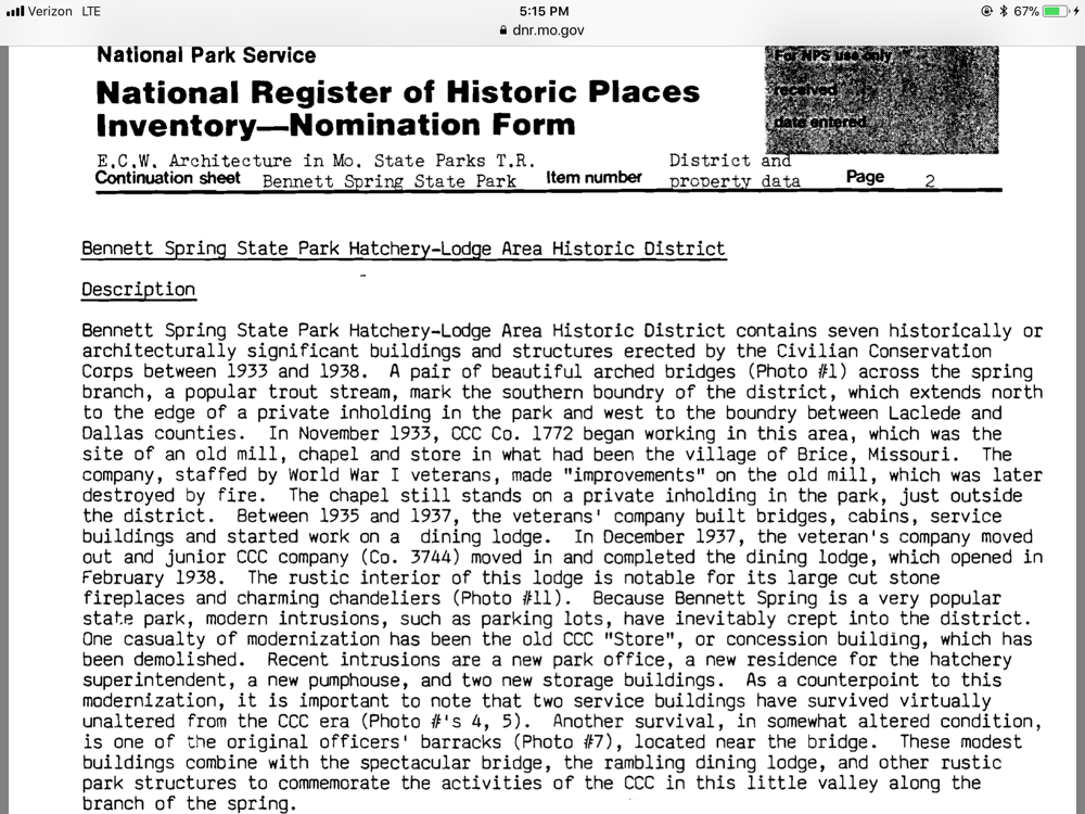 We’ve been all up into the history of Bennett Spring since I accidentally found some information on the Department of Interior website last night.