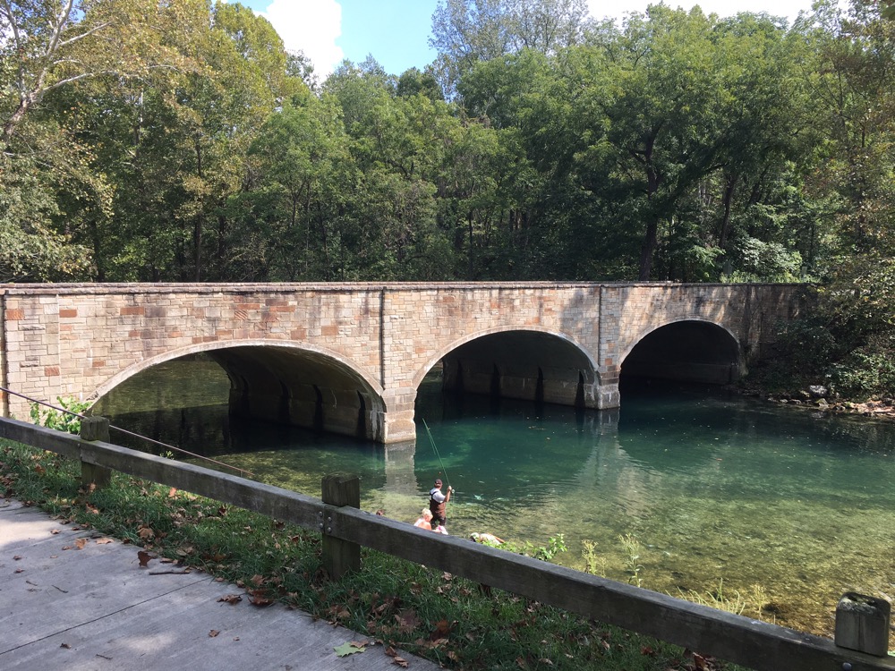 The stone bridge built by the civilian conservation Corp. Arches turned sideways designating CCC.