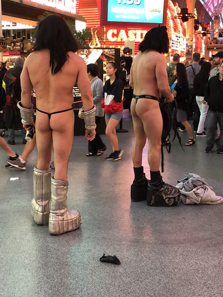 First adventure Fremont Street to see naked people and, quite frankly, freaks along with a long anticipated zip line down Fremont street. Buying tickets early is necessary for a Friday night in Vegas so Julie and I were pretty bummed…but the freaks did not disappoint!