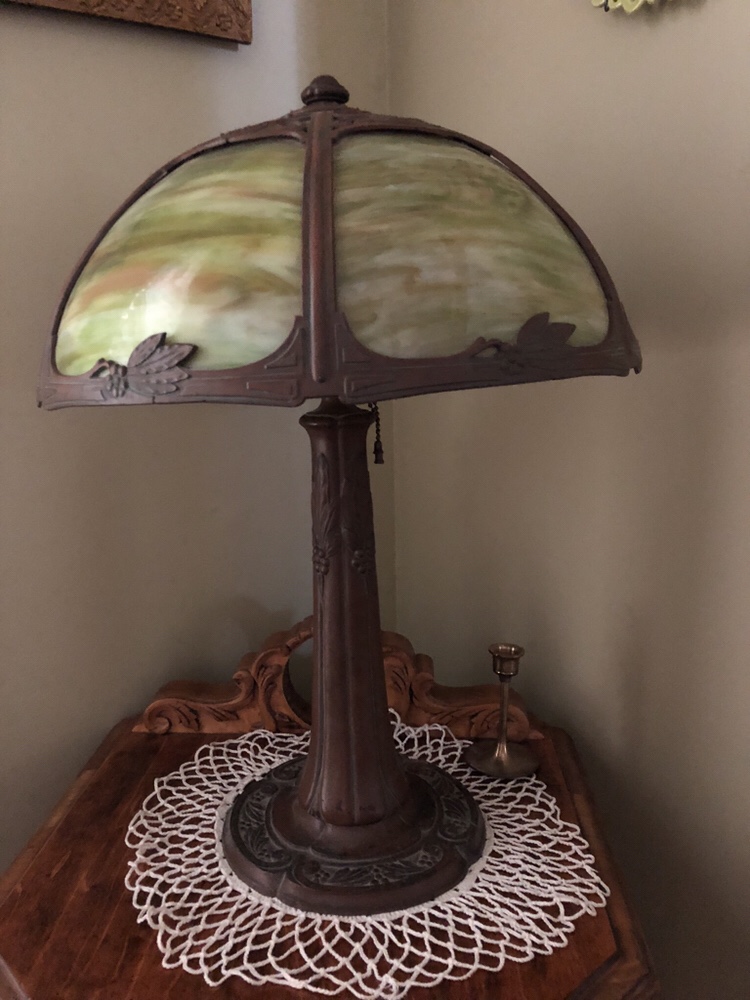 …..and then this lamp. It’s old. My grandma Green always had it sitting in the large window in her “front room”. It was on an old library table surrounded or I should say crowded with her many, many violets. It’s one of my most precious pieces.