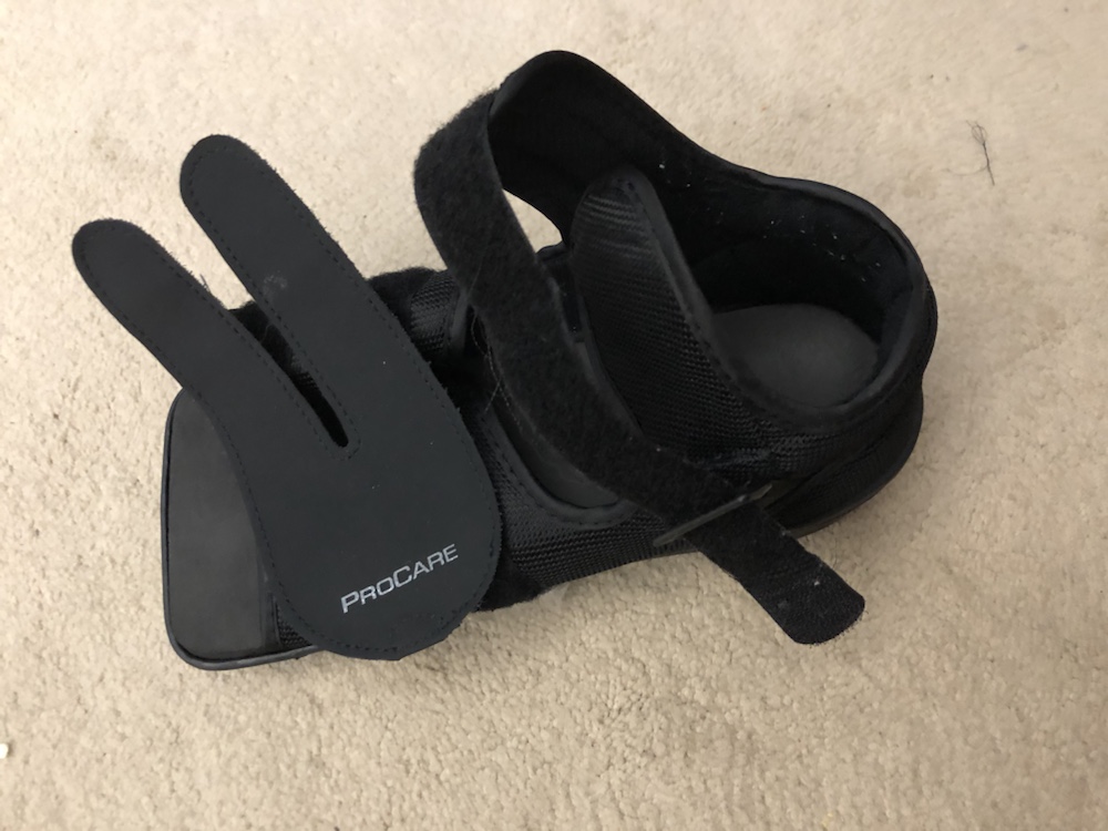 Anyway…I had big toe joint surgery last Tuesday…the doctor sent me home with a large prescription of pain medication. During an office visit a month before, I indicated to him that I’m not keen on taking pain meds….will I really need them? Well, the first couple of days anyway, was his response. To that response I now say..liar, liar pants on fire, hell yes you need to take the pain meds….I won’t belabor the painful journey I’m on…physical and mental pain. Here’s my footwear! Oh…just one foot…the other foot I wear a pair of shoes the same height….finding that combination has so far proved impossible.