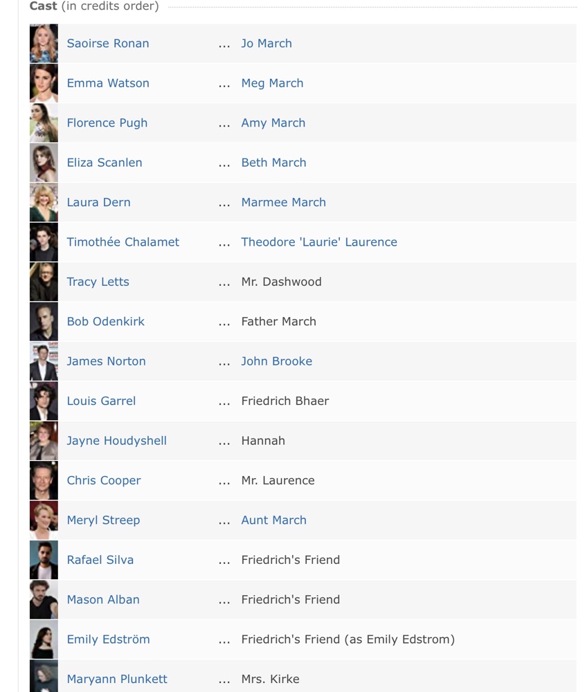 Little Women…due to the fact that I read the book many years ago and I have seen one of the remakes of Little Women, the story line was, shall I say, predictable. So I focused on the acting and the nuances of this heartwarming period piece. I had googled Louisa May Alcott before heading to the theater as the movie is loosely based on her childhood experiences….I feel it enhanced my understanding and love for the characters especially Jo. Acting was very good. The storytelling technique of jumping back and forth between the March family being young and the March family all grown up confused me at times. I was so pleased to see Meryl Streep as the Aunt everyone probably loved but generally tolerated. Worth a couple of entertaining hours at the theater. Recommend!