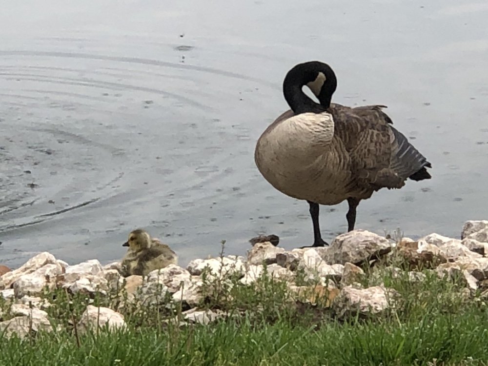 ….and then there are the geese. Last year we had a pair of geese and 4 goslings. We watched this family of 6 all summer as the babies grew up. It was always the group of 6 floating around together….by the end of fall, we had no idea who was the mom and dad and who were the kids but they were always out there together doing their family thing!