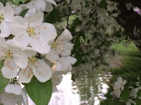Exactly catty-corner across the pond is a cluster of trees…not sure what the are…maybe some type of cherry. The scent is overwhelming.