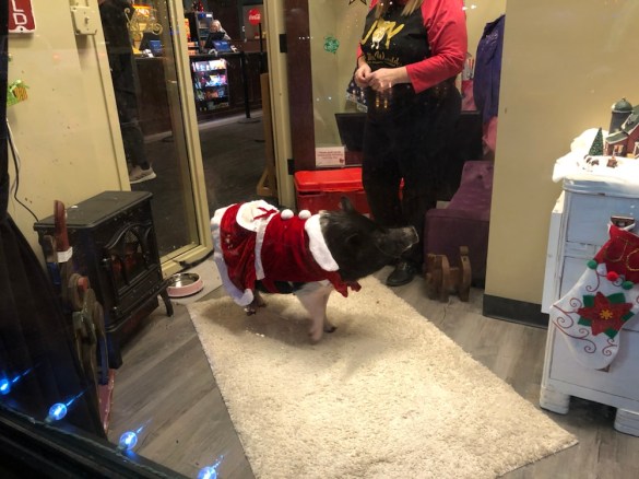 Since we have been gone, old buildings on the square have been refurbished, new traffic lights down the main drag and the movie theater has been updated. The new theater owners have a pig named Joy who lives her life on display in a store front next to the theater.