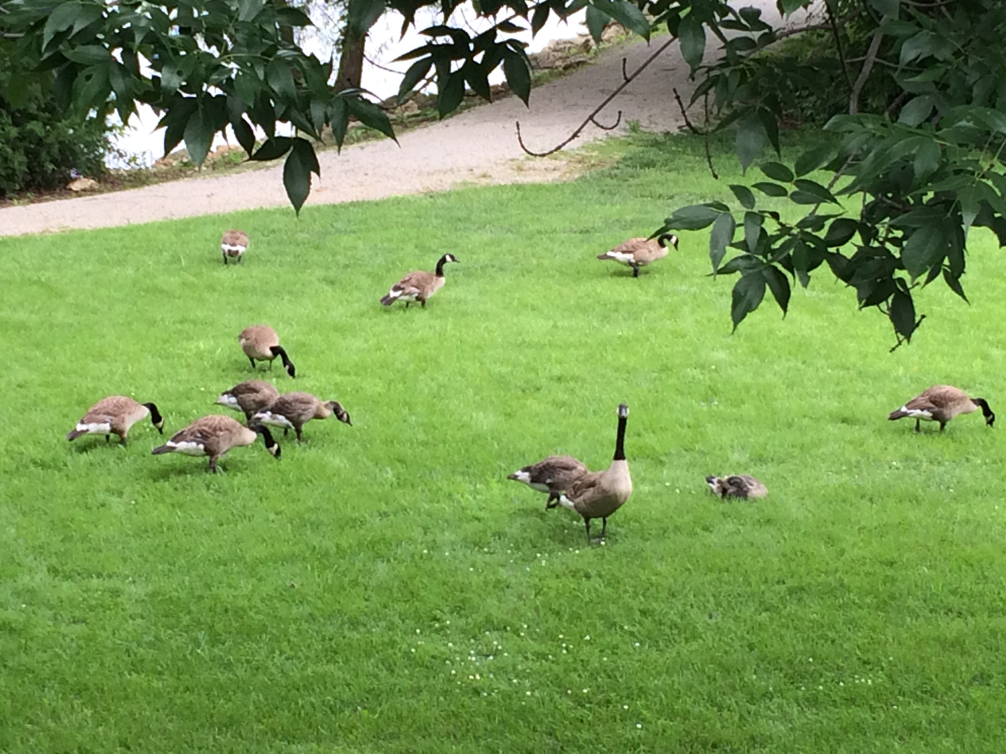 So….I was sitting on the deck yesterday watching the geese on the pond….as they landed on land, they started creeping up into the yard … one little step-peck at a time until they were no longer on HOA yard but MY YARD.
